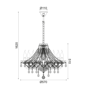 ACA ΚΡΕΜΑΣ Φ/Σ 3ΧΕ14 ΔΙΑΦΑΝΟ ΚΡΥΣΤΑΛΛΟ+ΧΡΩΜΙΟ ΜΕΤΑΛΛΟ Φ48ΧΗ160CM GLADIOLO