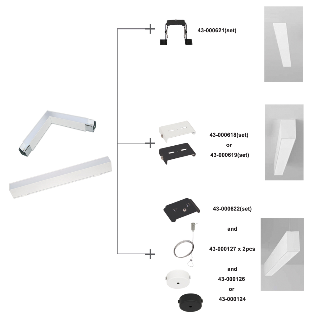 Γραμμικό φωτιστικό με δυνατότητα τοποθέτησης ως κρεμαστό με συρματόσχοινο ή ντίζα οροφής ή ράγας.