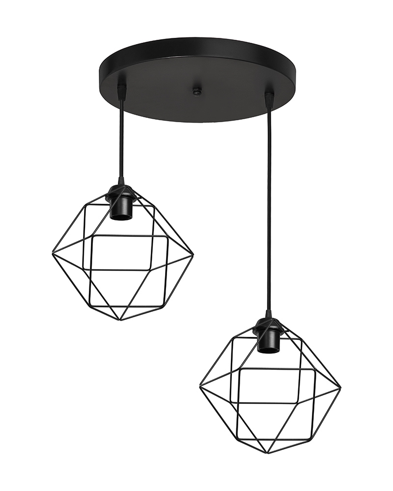 Φωτιστικό δίφωτο μεταλλικό μαύρο DM-03PENDEL 2/L BLACK ΑΝΙΣΟΠΕΔΟ ΠΟΛΥΓΩΝΟ