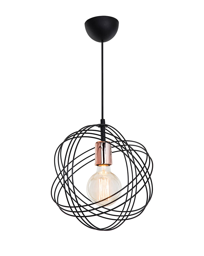 Μοντέρνο μονόφωτο μεταλλικό μαύρο με μαύρο καλώδιο SATURNO BLACK 1/L