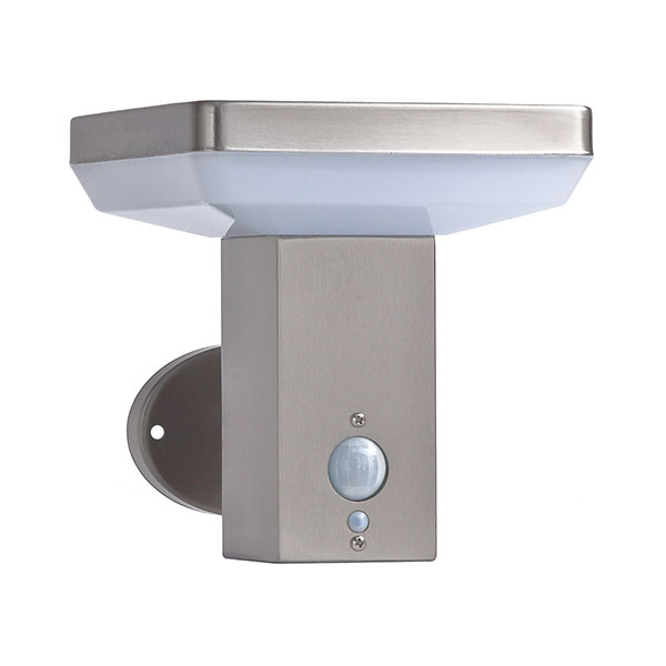 METANOR Ηλιακή απλίκα LED με αισθητήρα κίνησης 4.4W 3000K τετράγωνο ασημί σώμα IP44 MTN-93371