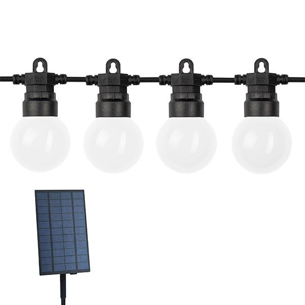 METANOR Ηλιακή γιρλάντα LED 10μ. με 20 λαμπτήρες G50 γαλακτερούς θερμό λευκό 2700K IP65 MTN-90921